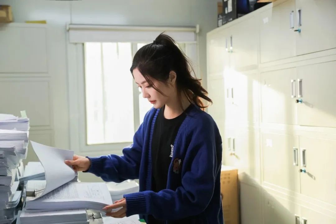 劇中“蘇筱”的扮演者王藝瑾、明家歆來(lái)到了真實(shí)版“蘇筱”的辦公場(chǎng)地,在“書(shū)?!卑愕奈募Y料與密密麻麻的數(shù)據(jù)表格中,細(xì)細(xì)感受著女工程造價(jià)師平日里的真實(shí)工作狀態(tài)?!拔液軜s幸能飾演蘇筱這樣一個(gè)角色。在北京這座城市的各個(gè)地方,都有包括城建人在內(nèi)的打工人的身影。一幢幢建筑拔地而起的背后,都有他們付出的艱辛,他們值得被歌唱。”王藝瑾在體會(huì)了造價(jià)師的工作常態(tài)后談到。