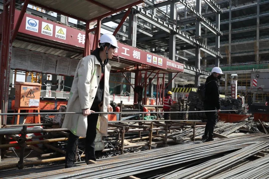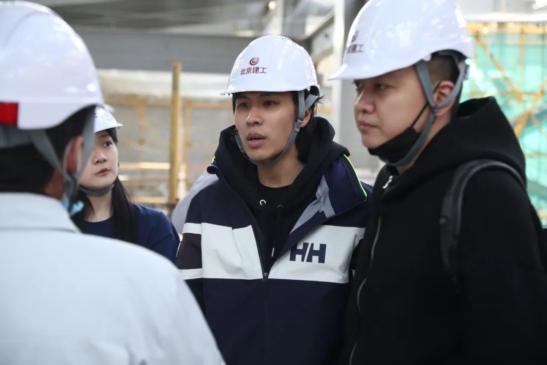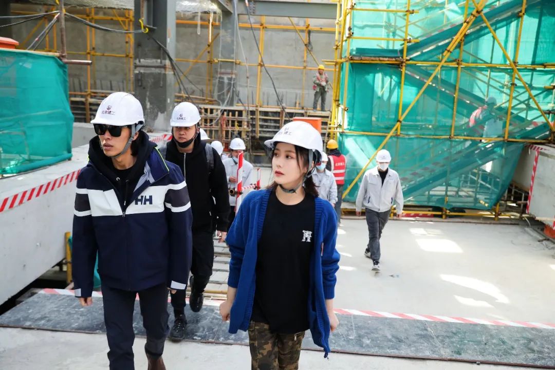 劇中“趙顯坤”的扮演者甘泉,“夏明”的扮演者孫圣凱,“徐知平”的扮演者張瓏騰等人在工程負(fù)責(zé)人的帶領(lǐng)下,走馬道來(lái)到地下工地的施工現(xiàn)場(chǎng)勘察施工情況。馬道路窄,地下情況復(fù)雜,交叉作業(yè)量大,回到地面,男演員們長(zhǎng)舒一口氣,數(shù)十米高的腳手架上,工人們還正專心細(xì)致地進(jìn)行高空作業(yè),他們不禁感嘆:“這是第一次來(lái)到建筑施工現(xiàn)場(chǎng),如此近距離地接觸到這些建筑行業(yè)的一線工作人員,看到工人們?cè)阡摻罨炷林律碇し?,頭戴安全帽,真實(shí)為這座城市的建筑辛勤勞動(dòng)著,那一瞬間真的非常感動(dòng)。”