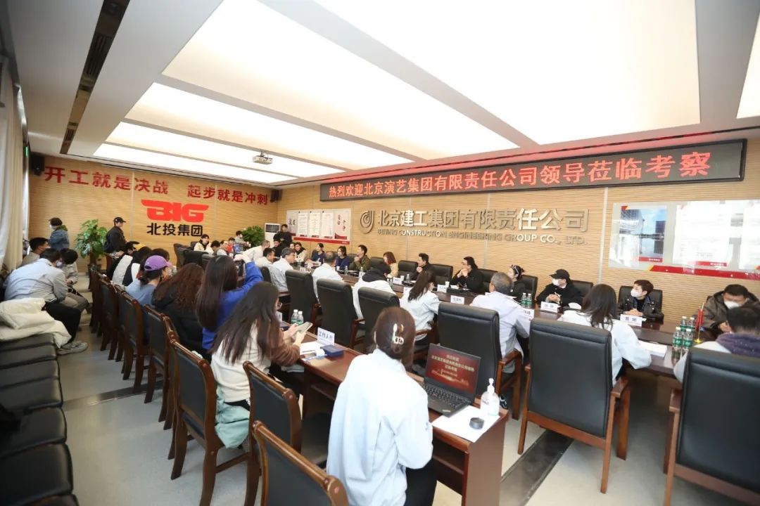 實(shí)景排練過(guò)后,音樂(lè)劇《理想之城》劇組來(lái)到副中心劇院項(xiàng)目部會(huì)議中心,與北京建工集團(tuán)總承包部書(shū)記齊瑞鋒、副總經(jīng)理吳偉等領(lǐng)導(dǎo)及各工種代表進(jìn)行了深入交流。